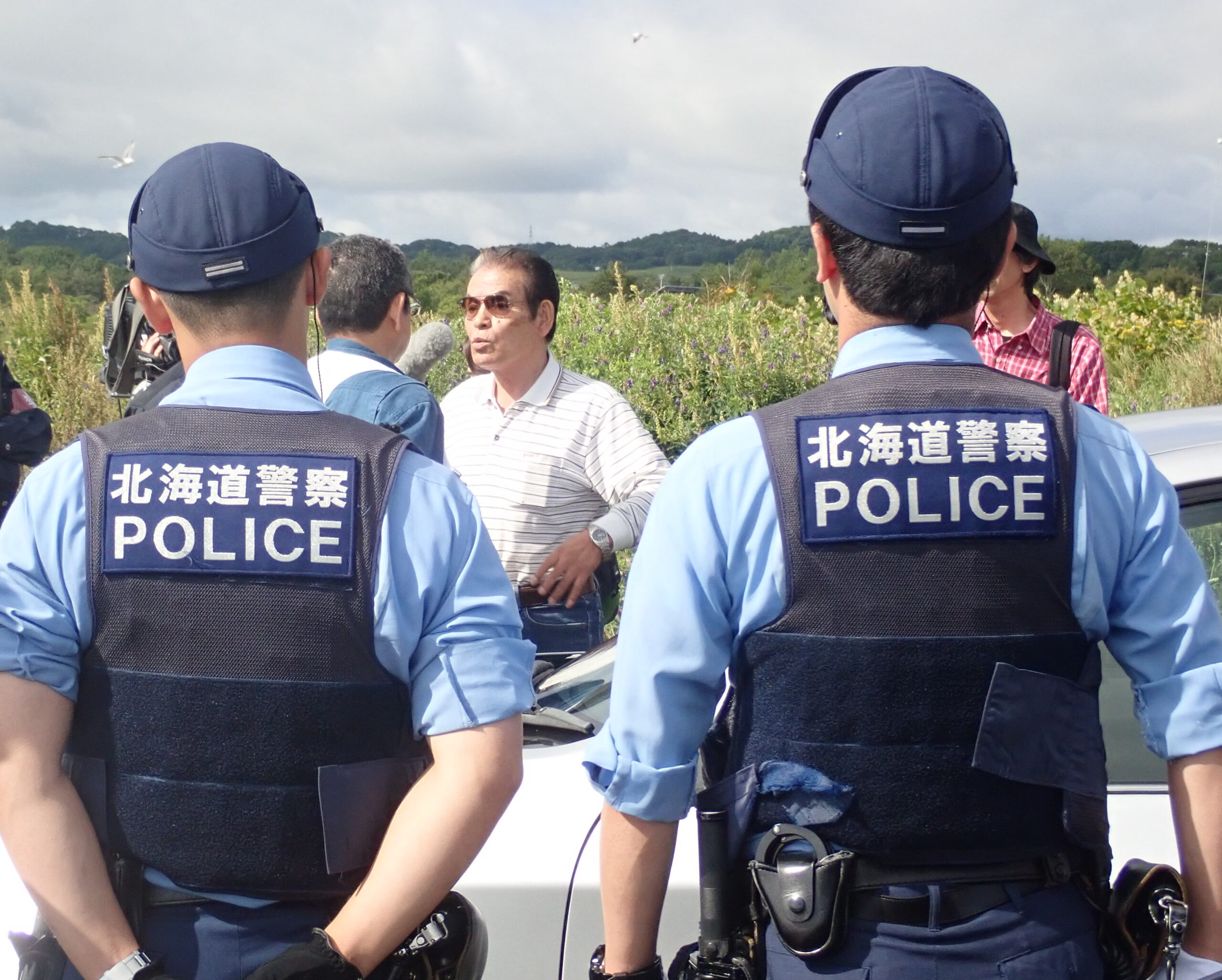 Hokkaido Police hinder Hatakeyama Satoshi from taking salmon.