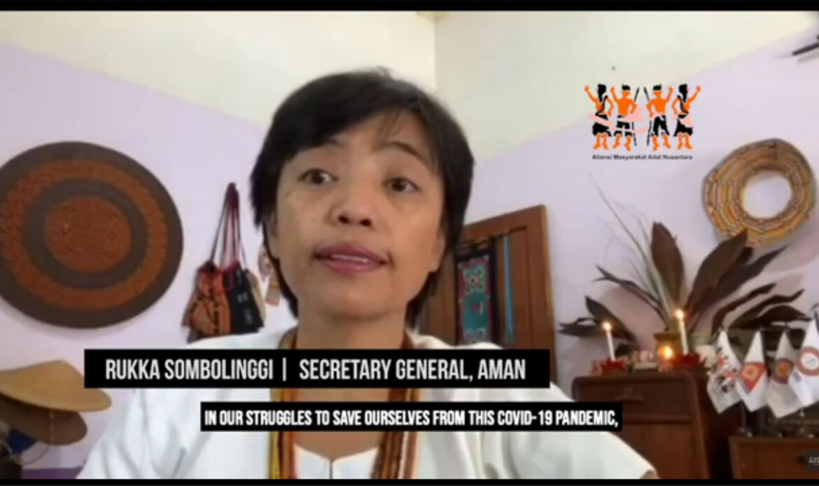 Rukka Sombolinggi, Secretary-General of Aliansi Masyarakat Adat Nusantara (AMAN), gives a statement on how the COVID-19 pandemic has exasperated existing threats to land rights and heightened conflicts and criminalization of Indigenous peoples in Indonesia. Detailing resilience tactics, she shares hope which is now crucial in the fight against the new omnibus bill.