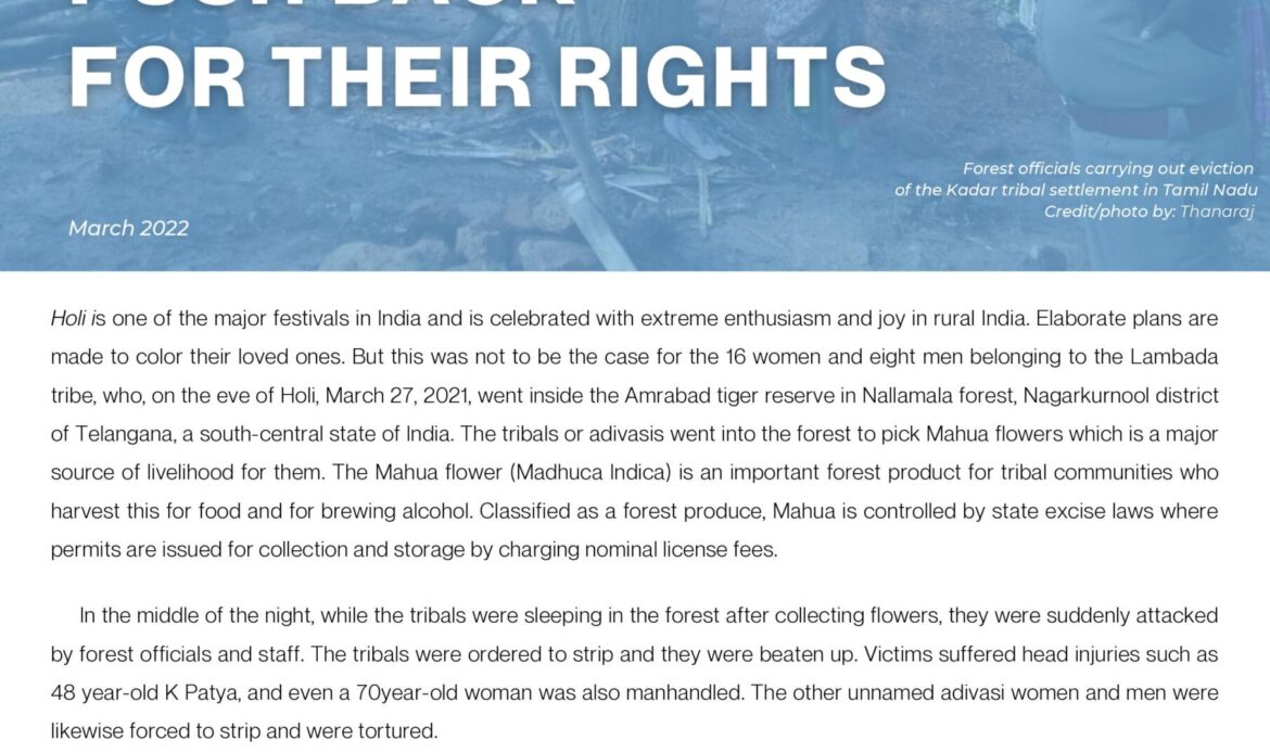 Besides the torture of several men and women of the Lambada tribe in Nagarkurnool district, Telangana by forest officials, the list includes the case of forest officials and staff who forcibly evicted tribal people by burning down their huts in Palampattu hills in Tamil Nadu in July 2021.