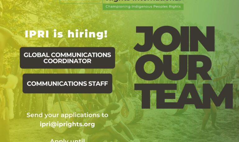 The Indigenous Peoples Rights International (IPRI), an indigenous-led global organization that responds to the global crisis of widespread human rights violations against Indigenous Peoples, is looking for Communications professionals to join its team.