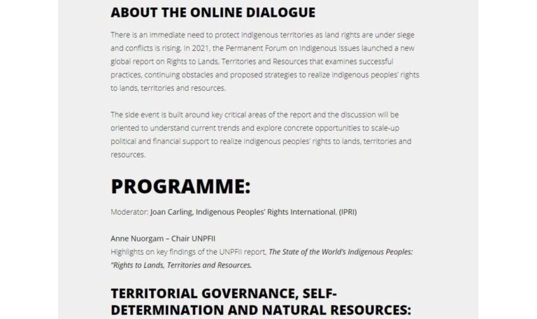 The Indigenous Peoples Rights International (IPRI), Asia Indigenous Peoples Pact (AIPP), Indigenous Rights Advocacy Center (IRAC), Lawyers Association for Human Rights of Nepalese Indigenous Peoples (LAHURNIP) and Panaghiusa-Philippine Network to Uphold Indigenous Peoples’ Rights (Panaghiusa), are organizing a..