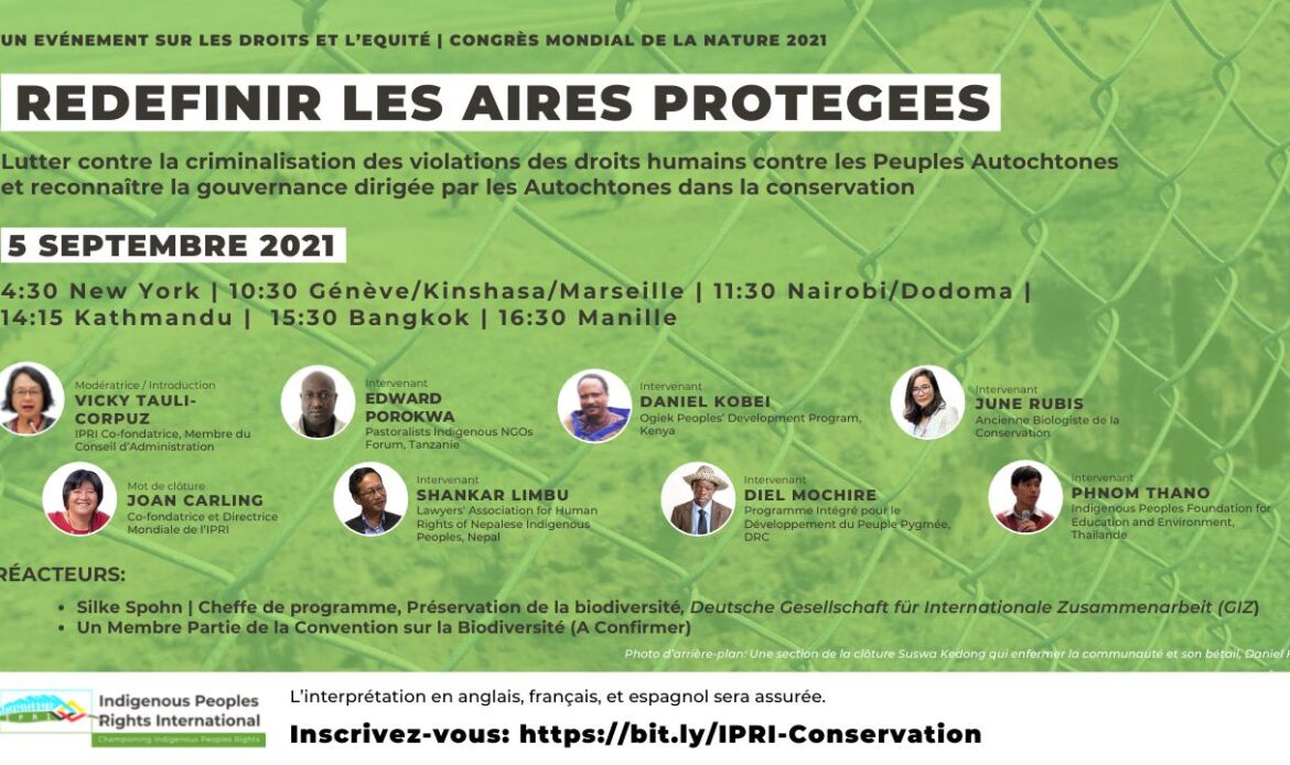 Redéfinir les aires protégées: Lutter contre la criminalisation et les violations des droits humains contre les Peuples Autochtones et reconnaître la gouvernance dirigée par les Autochtones en matière de conservation