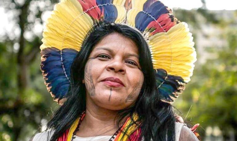 image from: https://campanhademulher.org/sonia-guajajara/ SONIA GUAJAJARA: PORTER LA LUTTE DES AUTOCHTONES DANS UNE ARÈNE PLUS LARGE «Les Peuples Autochtones ont souffert de processus historiques de préjudice et de racisme qui ont longtemps délégitimé notre voix dans la sphère publique…