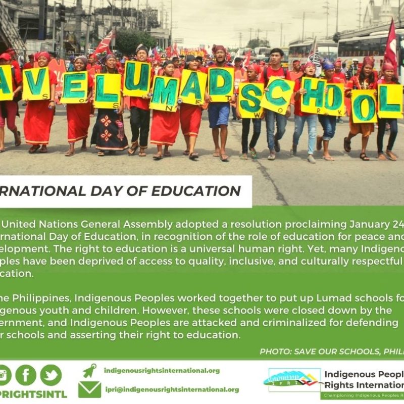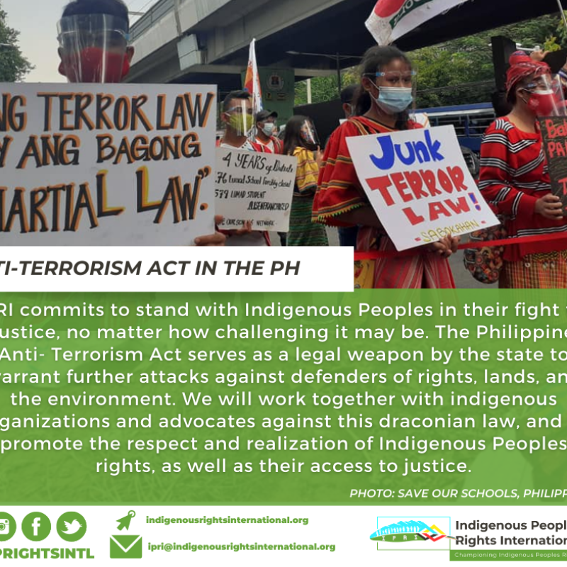 Philippine Supreme Court holds oral arguments on Anti-Terrorism ActRead MorePhilippine Supreme Court holds oral arguments on Anti-Terrorism ActNews and FeaturesIn the video | The #Karuazu people bless the #COVID19 vaccines delivered to themRead MoreIn the video | The #Karuazu people bless the #COVID19 vaccines delivered to themNews and FeaturesCall for inputs: European Union’s Proposed Law on mandatory human rights and environmental due diligence corporations to respect human rightsRead MoreCall for inputs: European Union’s Proposed Law on mandatory human rights and environmental due diligence corporations to respect human rightsNews and FeaturesPhilippines: Drop murder charge against indigenous rights defender, UN experts urgeRead MorePhilippines: Drop murder charge against indigenous rights defender, UN experts urgeNews and FeaturesJanuary 24 is International Education DayRead MoreJanuary 24 is International Education DayNews and FeaturesPHILIPPINES | 9 Indigenous Tumandok killed, 17 others arrested in police ops in PanayRead MorePHILIPPINES | 9 Indigenous Tumandok killed, 17 others arrested in police ops in PanayNews and FeaturesCall for Global Advocacy CoordinatorRead MoreCall for Global Advocacy CoordinatorNews and FeaturesStatement of Mr. Francisco Cali-Tzay on the Rights of Indigenous PeoplesRead MoreStatement of Mr. Francisco Cali-Tzay on the Rights of Indigenous PeoplesNews and FeaturesPhilippines: Government’s terrorist-tagging denies right to education to thousands of indigenous LumadRead MorePhilippines: Government’s terrorist-tagging denies right to education to thousands of indigenous LumadNews and FeaturesFirstPrev05060708NextLast
